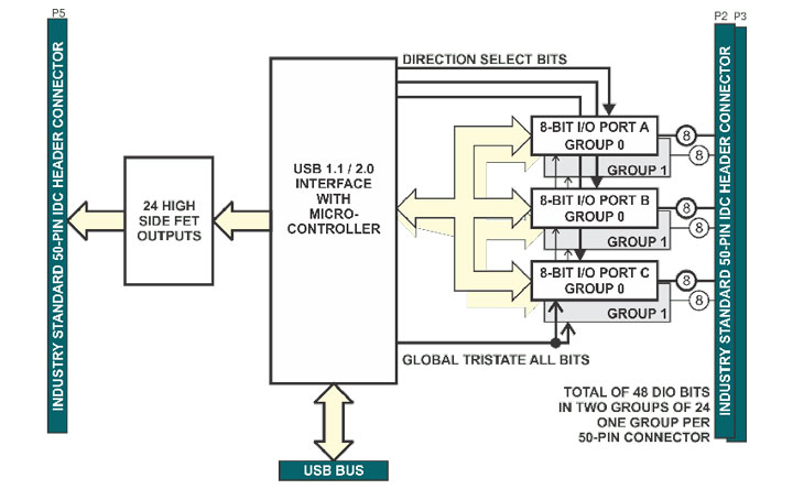 ● Externally Powered: ** Optional on-board external power circuitry and AC/DC (regulated 5V output) adapter can be ordered (“-PR” option) if source current use is expected to be greater than what can be supplied by the USB bus (typically 500mA).